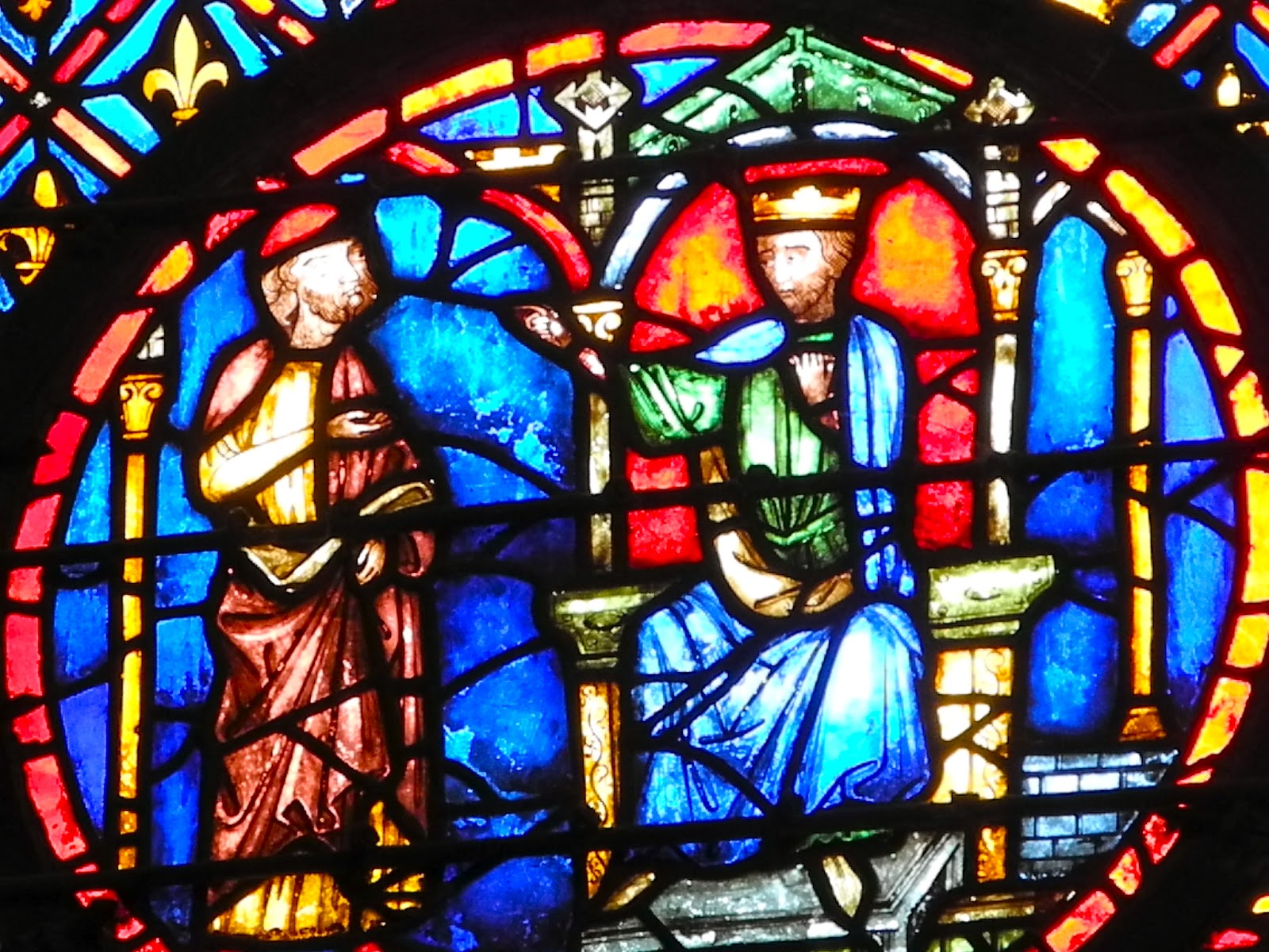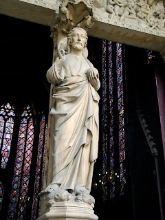 Y como nos supo a poco, y no estábamos demasiado cansados, decidimos acercarnos hasta la Sainte Chapelle, que queda muy cerquita. Era la hora de comer y tardamos muy poco en entrar, unos quince minutos nada más. Las vidrieras de este antiguo relicario del siglo XII son realmente espectaculares, pero sus relieves no tienen nada que envidiarles: